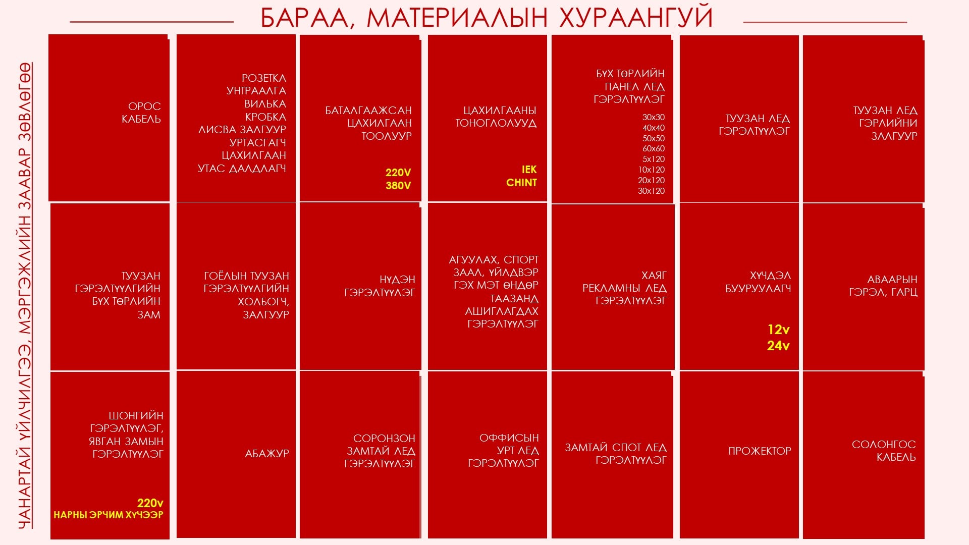 Категори: Цахилгаан гэрлийн худалдаа, суурилуулалт